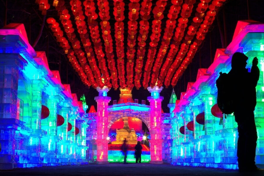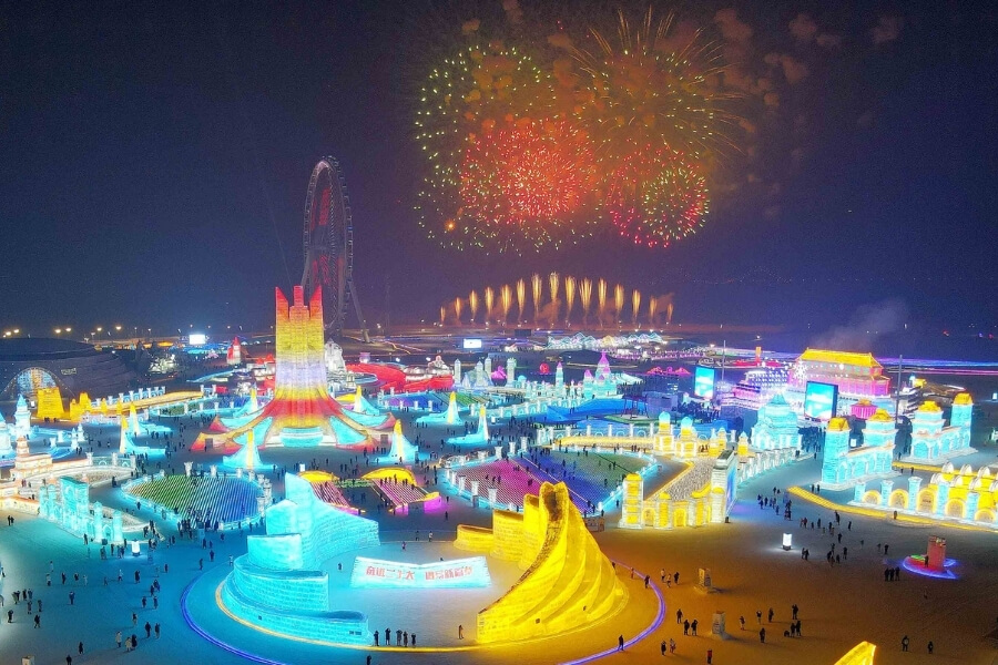 Covering over 1 million square meters, this is the festival’s most famous site. Expect to wander through towering ice palaces, intricate bridges, and colorful LED-lit sculptures that transform at night into a dreamlike landscape. Past editions even featured a 50-meter ice replica of the Great Wall of China.