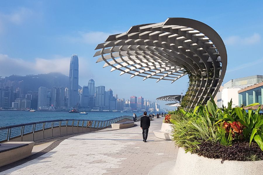 Walking along Tsim Sha Tsui allows visitors to enjoy harbor views and the nightly Symphony of Lights show at no cost.